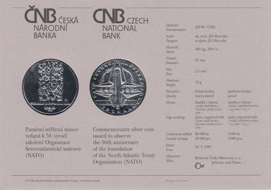 | 1709. | 200 Koruna 1999 - vstup ČR do NATO, KM.34 (Ag900,