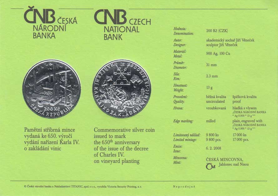 | 1715. | 200 Koruna 2008 - Karel IV. a zakládání vinic,