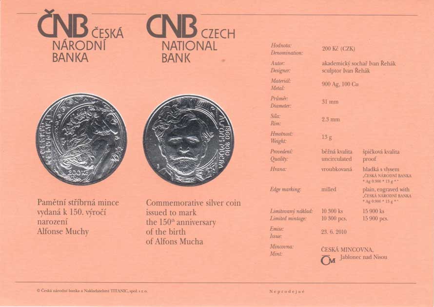 | 1717. | 200 Koruna 2010 - 150 let narození Alfonse Muchy,