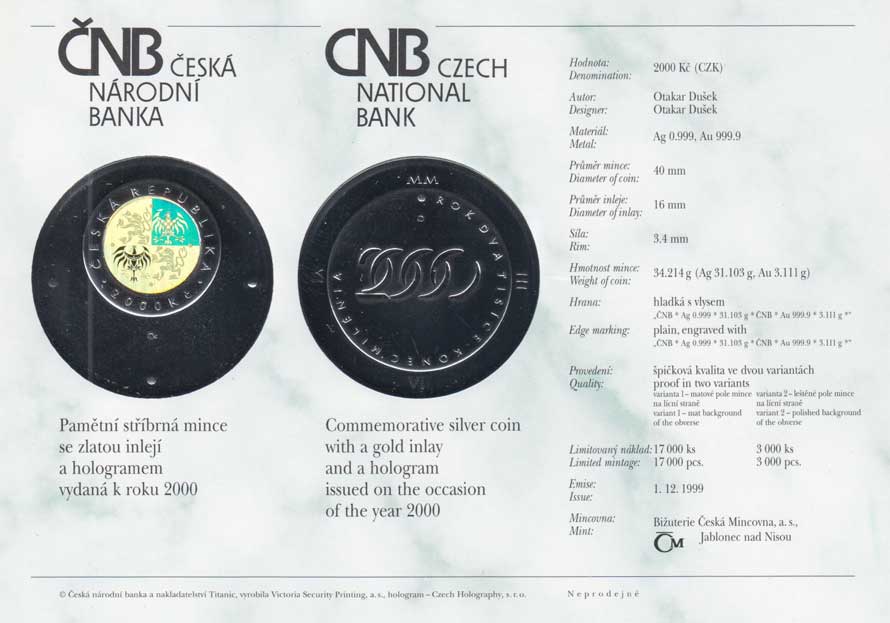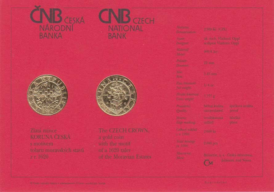 | 1742. | Karta (certifikát) k pamětní minci 2.500 Kč 1996 -
