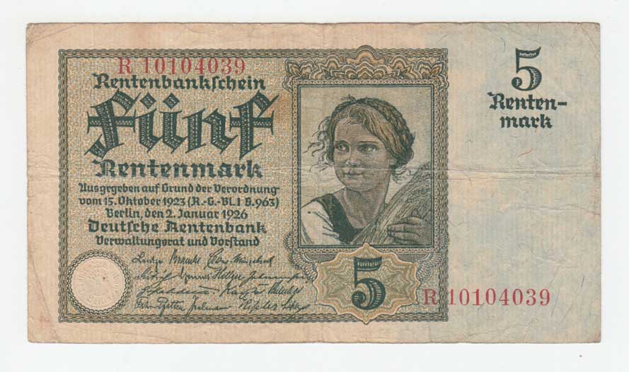 | 3545. | 5 Rentenmarka 1926, Pick.169, Ros.164b - srie R | 3- | 120,- | |