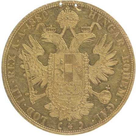 | 22. | 4 Dukát 1880 b.zn. dvě dírky po korunce | tém.0/0 | 20000,- | --.- |
