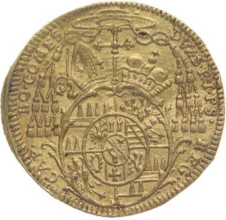 | 114. | Dukát 1687, korunovaný knížecí znak, opis /