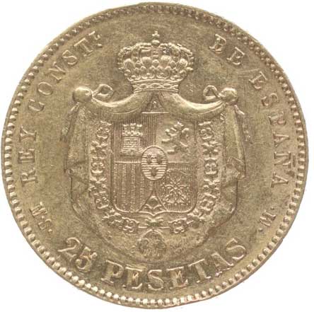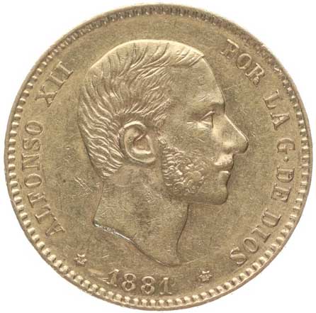 | 127. | 25 Peseta 1881 M.S.-.M., KM.A78 | tém.0/0 | 8000,- | --.- |