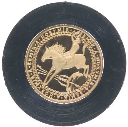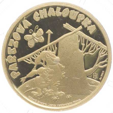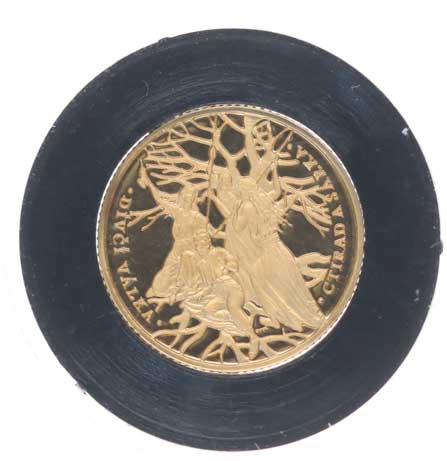 Portrét královny Alžběty zprava, opis / Křemílek, opis ryz.999/1000, Au 16 mm, 3,13 g |