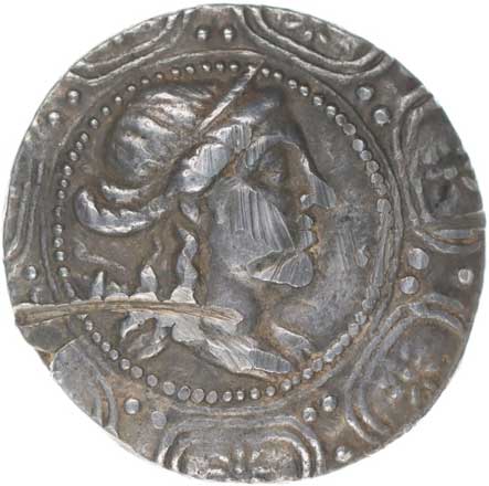 sedící na přídi lodi, nápis, monogram, SG.2496, BMC.8.47-8, 1,56 g |