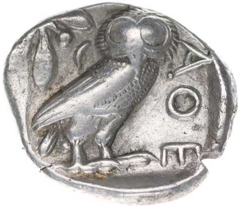 | 218. | AR Tetradrachma, Hlava Atény doprava / sedící sova pod vavřínovými