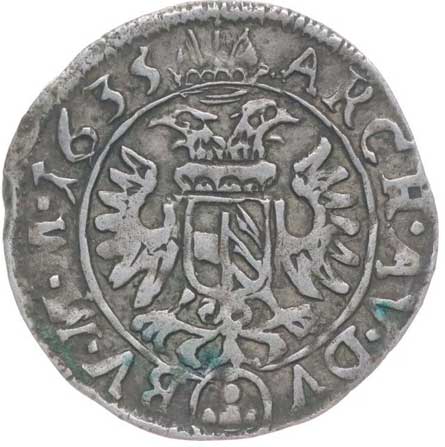 | 427. | 3 Krejcar 1631, Praha-du Bois, J.30c, MKČ.762pod. velká hlava,