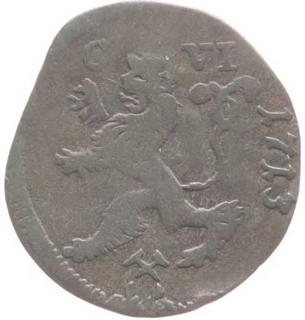 | 489. | 1/2 Krejcar 1713, Praha-Ritter, J.4a, MKČ.1843 | 2/- | 1500,- | --.- |