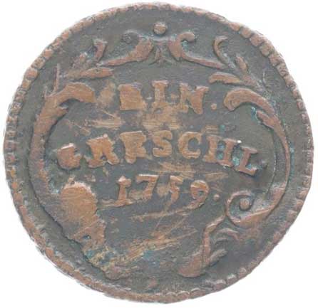 | 497. | Cu Grešle 1759 b.zn., menší typ, N.42a, Eyp.229, Cr.2, MKČ.1981