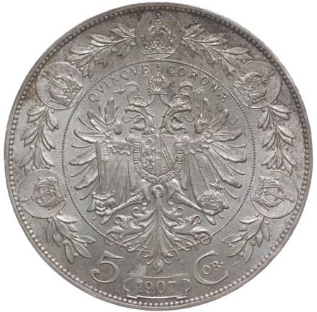 | 1182. | 5 Koruna 1907 b.zn. | tém.0/0 | 2000,- | --.- |