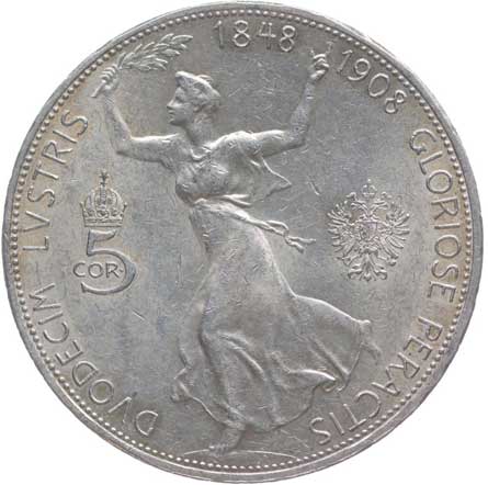 | 1199. | 5 Koruna 1908 b.zn. - jubilejní | tém.0/0 | 1300,- | --.- |