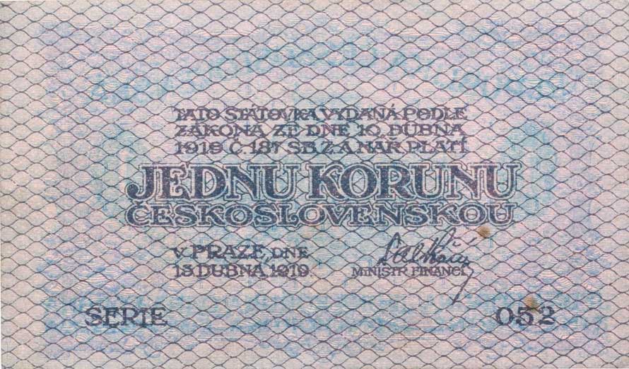 | 1284. | 1 Kč 1919, série 052, B.7, Hejz.7a 2x hnědá skvr. 2 mm "neperf." | 1 | 600,- | --.- |