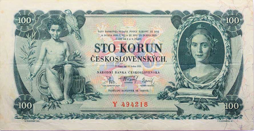| 1291. | 100 Kč 1931, série Y, B.25a, Hejz.25a slabé natrž. do 2 mm "neperf." | 3- | 600,- | --.- |