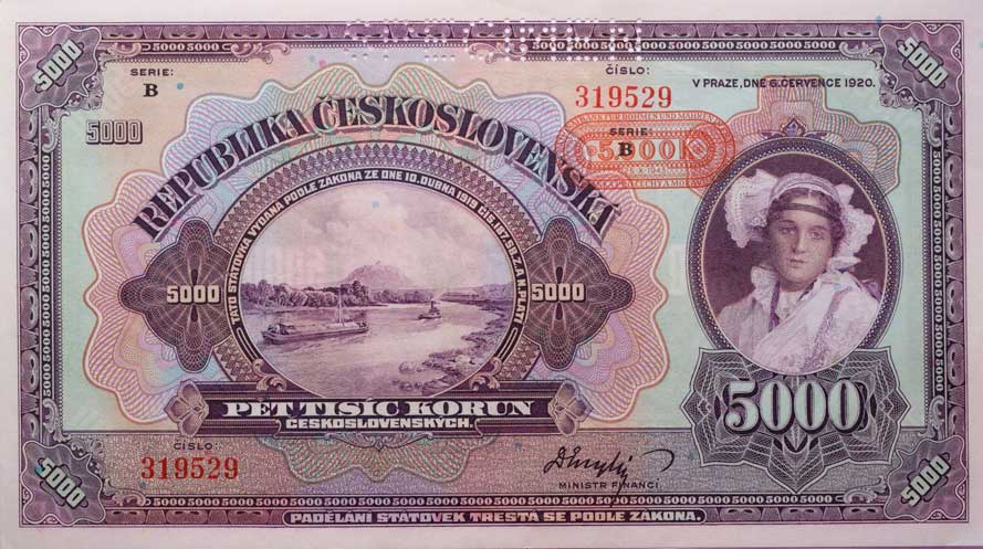 | 1296. | 5000 Kč 1920 - přetisk sér.B, B.N3(43), Hejz.N1S1