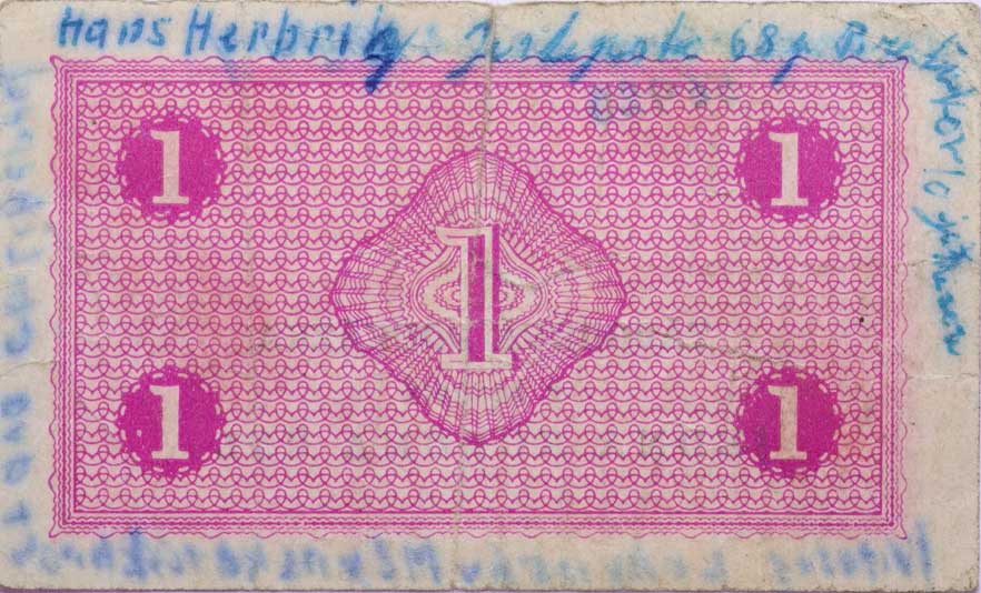 | 3462. | Reichenberg (Liberec), 1 Koruna b.l., č.008914, černý číslovač
