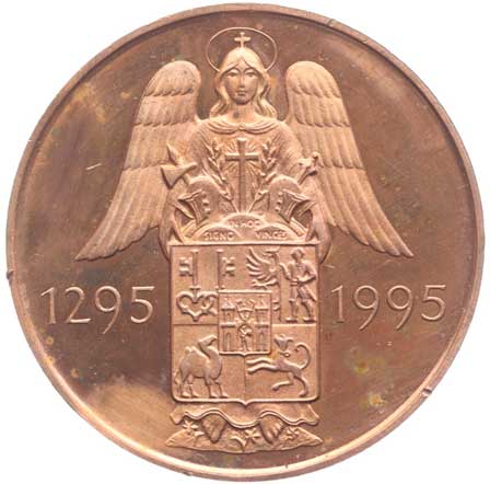 Evropy b.l. (1983), dominanty mětsa, nápis v ploše / bitevní scéna, 5řádk.nápis, Sign., Tombak 70 mm |