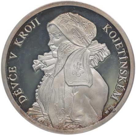 Poprsí zprava, opis / polopostava dívky zleva, opis, Punc.999, Ag 35 mm, 14,88 g orig.etue |