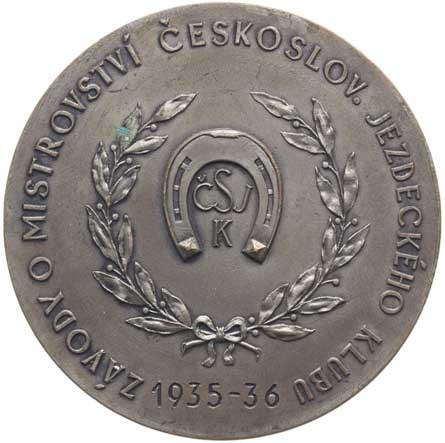 Hlava koně zprava / uprostřed podkova s "ČSJK" ve věnci, opis Sign.Pichl, Postř.bronz 49 mm |