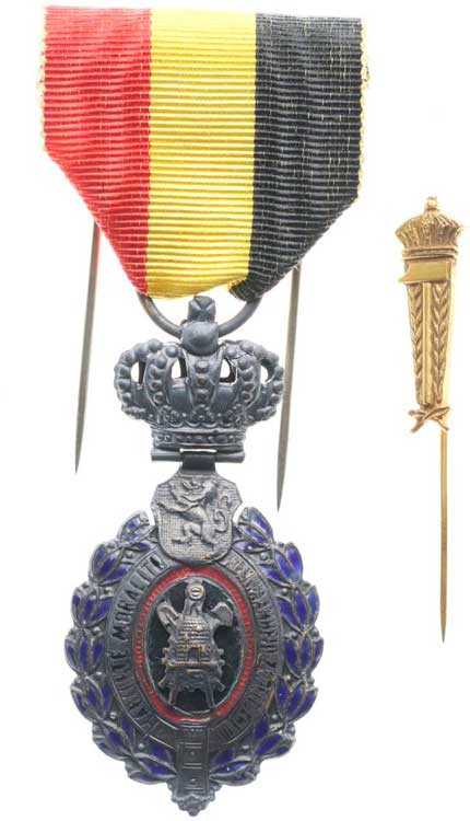 oválná medaile převýšená korunkou, Sign.H.Wairevens&Cle Bruxelles orig.stuha + miniatura odznaku 25x8,5 mm v orig.etui celk.2 ks |