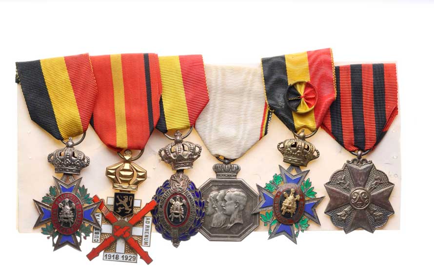 za průmyslové zásluhy II.tř. 2) pamětní záslužný kříž 1918-29 3) vyznamenání práce II.třídy 4) medaile na 100 let Belgie 5) vyznamenání práceza průmyslové zásluhy I.třídy 6) stříbrná medaile za dlouholetou službu orig.stuhy celk.6 ks |