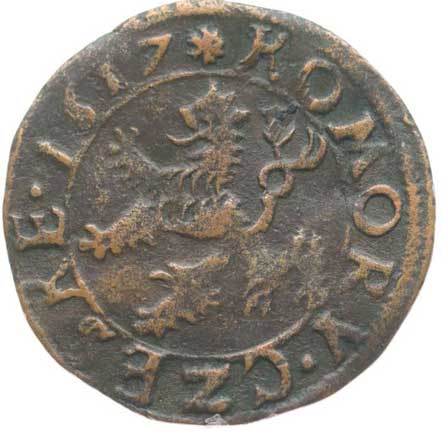| 256. | Malý (černý) peníz 1597, K.Hora-Herold, J.1e, MKČ.385, Do.1585