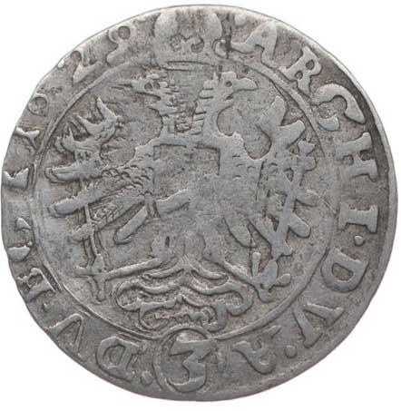 | 281. | 3 Krejcar 1629, Praha-Hübmer, jako J.28c, jako MKČ.760,