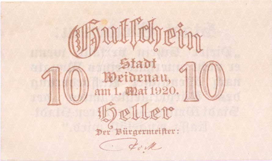 | 1159. | Vidnava (Weidenau) - 10 Heller 1.5.1920, DH.232.1.1 | 1 | 500,- | --.- |