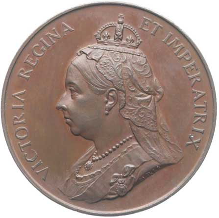 Poprsí královny zleva / 8řádk.nápis, opis s životopisnými daty Sign.Heaton, Bronz 32 mm, 11,32 g |