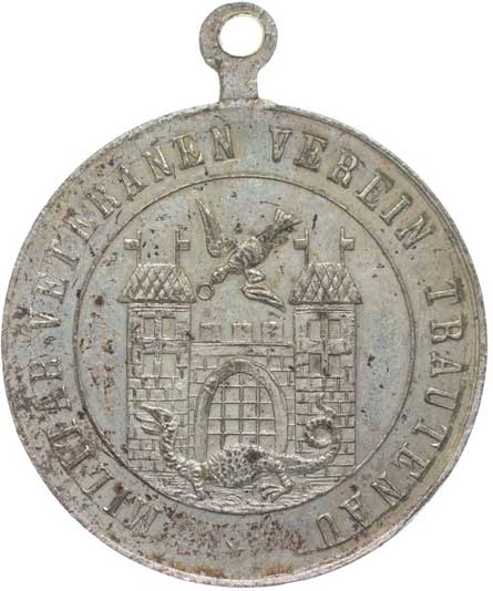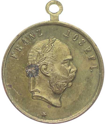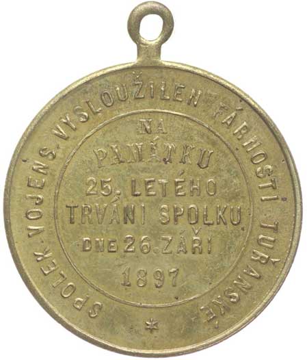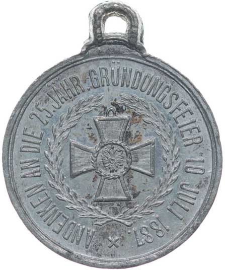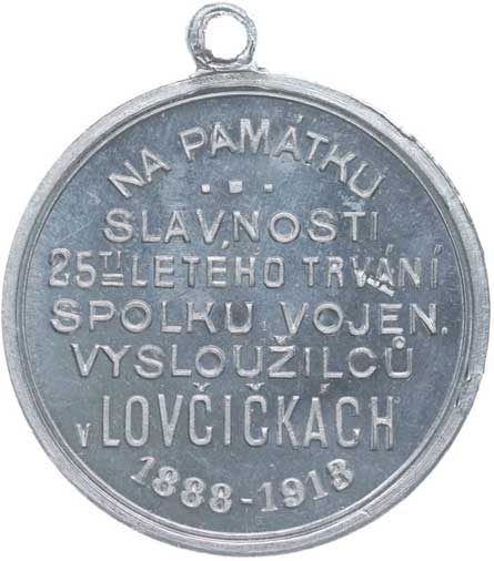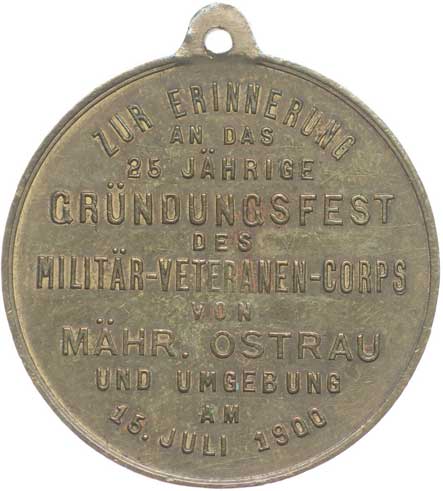 spolku 10.7.1887, vojenský kříž ve věnci, opis / korunovaný rakouský znak, opis, Sn 27 mm orig.raž.ouško |