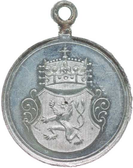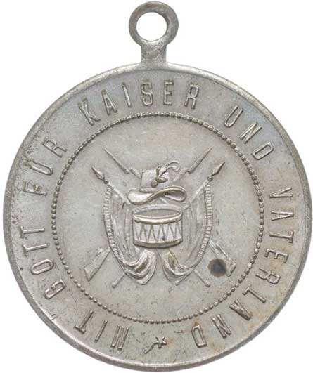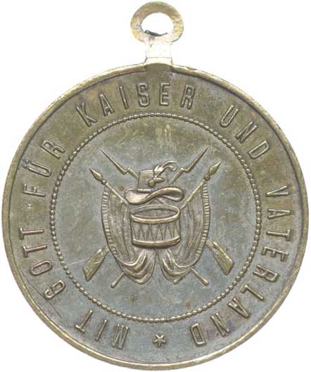 vysloužilců 28.6.1903, korunované vojenské atributy s praporem, bubnem a psem, opis / 4řádk.nápis, opis, Sn 34 mm vyl.ouško |
