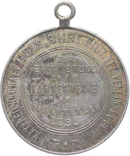 veteránů pod patr. Maxe Graf v.Attemps-Gilleis 8.9.1894, vojenské atributy, opis / 7řádk.nápis, opis, Postř.bronz 31 mm orig.raž.ouško |