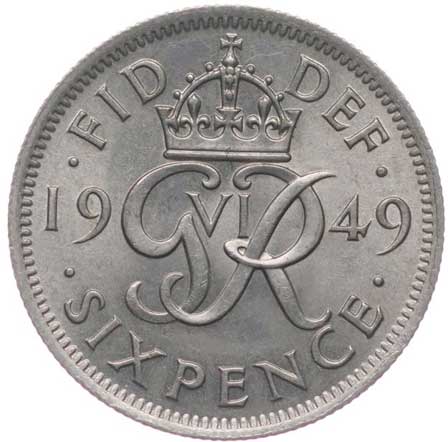 | 3303. | 6 Pence 1949, KM.875 | 0/0 | 80,- | --.- |