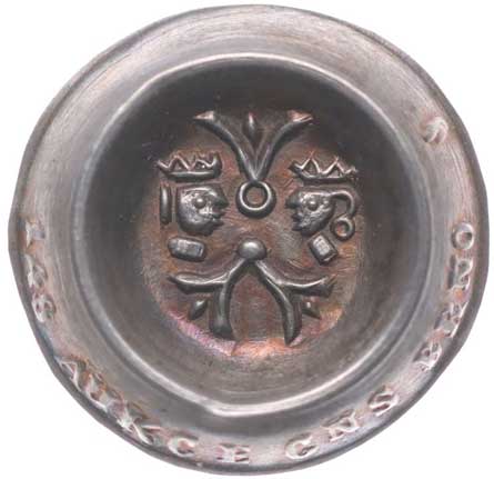 Hlava v plachetce s královskou korunou, vročení, opis / znak a nápis, Sign., Patinov.měď 50 mm, BK.14/8A, MF.A10/8c |