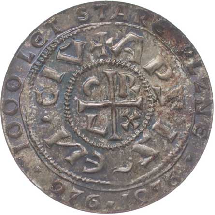 Líc Jaromírova denáru, opis / rub Jaromírova denáru, opis, Nesign., Punc., Ag 900, 27 mm, 5.4 g, BK.32/5, MF.A28/5 |