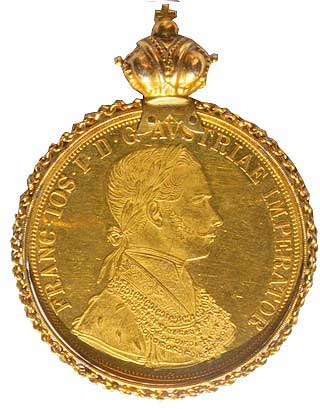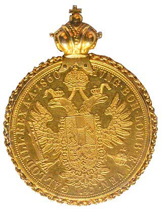 2. 4 Dukát 1860 A zasazený do Au věnce s korunkou 16,83 gr. 1/1 34000,- 36000,-