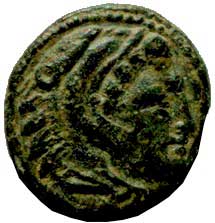 75. AE 11 mm A: Vousatá hlava s pokrývkou hlavy vpravo R: Polovina pegase