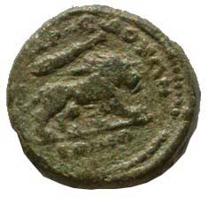 87. AE 11 mm A: Ženská hlava vpravo R: Polovina pegase vpravo ΛAM