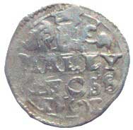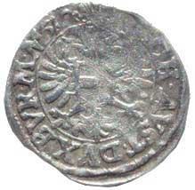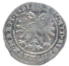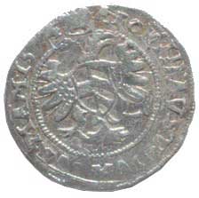 408. Bílý peníz jednostranný 1567 K. Hora, Ludvík Karel + Šatný MKČ 206, vylom. -1/ 120,- --.-