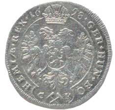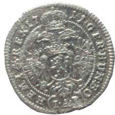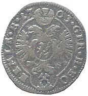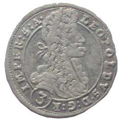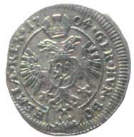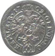 454. 3 Krejcar 1695 Praha, Egerer MKČ 1425 koruna bez stuh, R:skvr. 2/2 280,- --.-