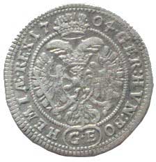 464. 3 Krejcar 1704 Praha, Egerer MKČ 1429 -1/1 700,- --.-