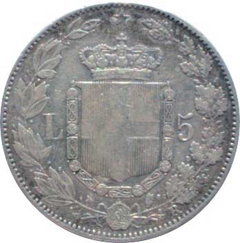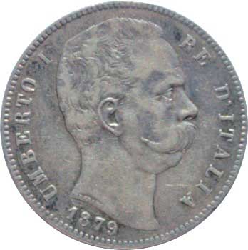 1105. 5 Lira 1879 R KM 20, nep.ned. -1/1- 1900,- --.-