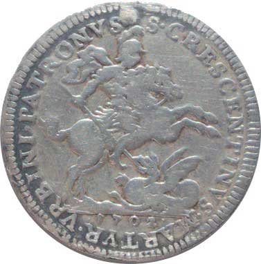 1172. 1/2 Piastr 1702 A: CLEMENT XI…sedící postava drží znak / Sv. Jiří