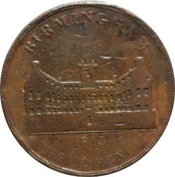 1177. 3 Pence Cu 1813 WORCESTERSHIRE BIRMINGHAM WORKHOUSE