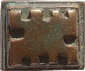 1196. Závaží na zlatý prach v podobě kvádru s rozvětvenou svastikou 47,04 gr.