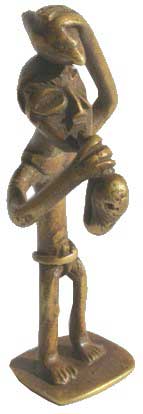 1199. Závaží na zlatý prach v podobě muže pijícího z vaku s dýní na hlavě
