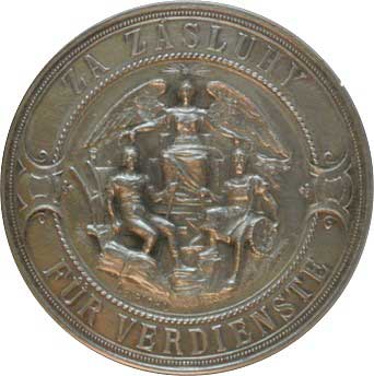 p. král. České. Pod korunou ve znaku lev, vavřínový věnec, čes. - něm. text PICHL Bz 52 mm 58,91 gr. |