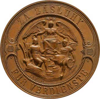 | 1324. | Za zásluhy, sedící dva řemeslníci, nad nimi anděl / Ústř. hosp. společnost