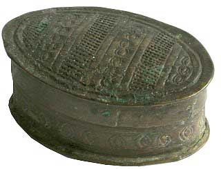 | 1302. | Tenkostěnná krabička na zlatý prach, oválná, tepená mosaz 51 x 32 mm
