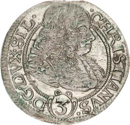 | 300. | Grošík (Dreier) 1673 CB, Břeh Kop. VIII/1-330 var. jiný tv